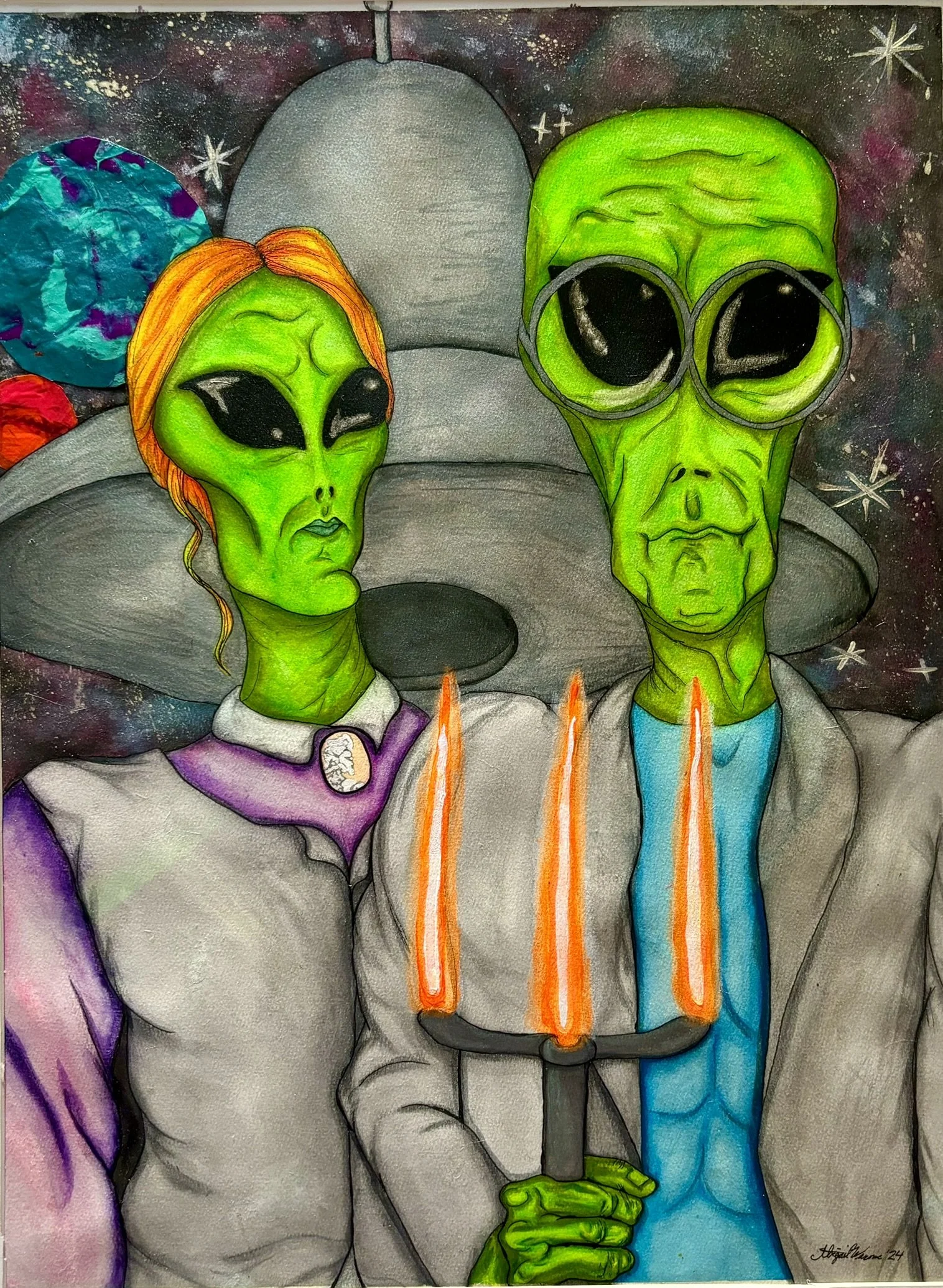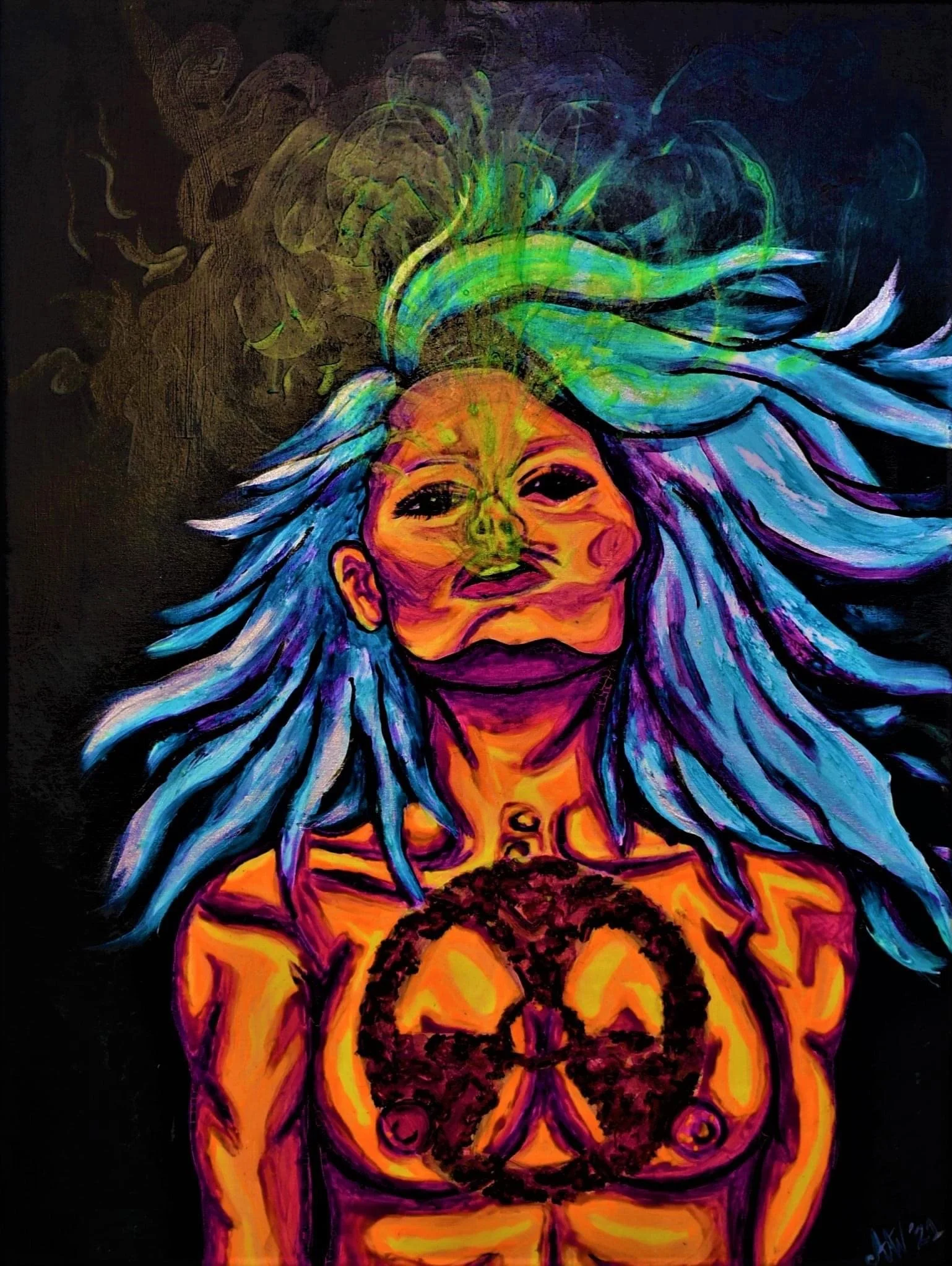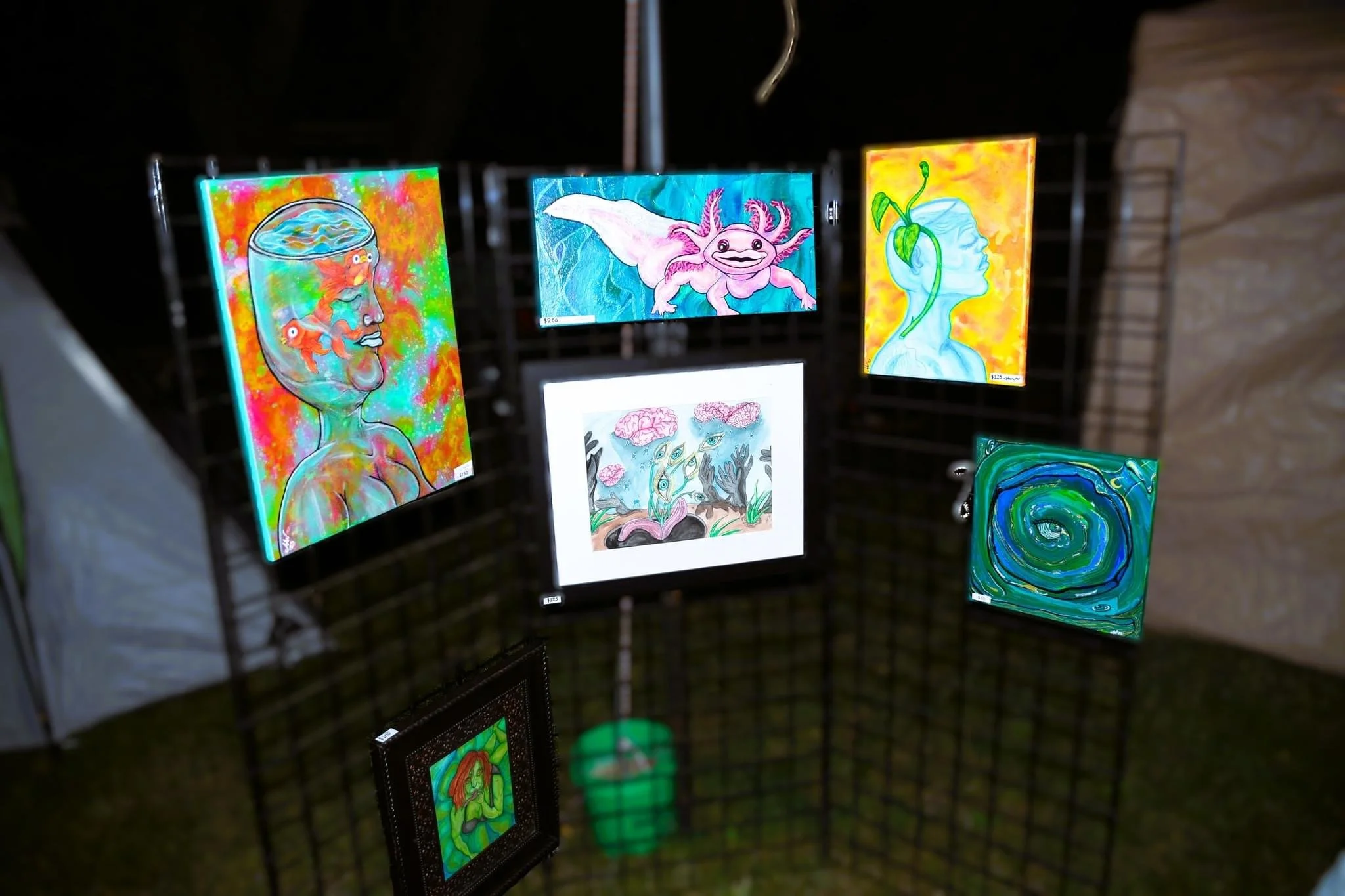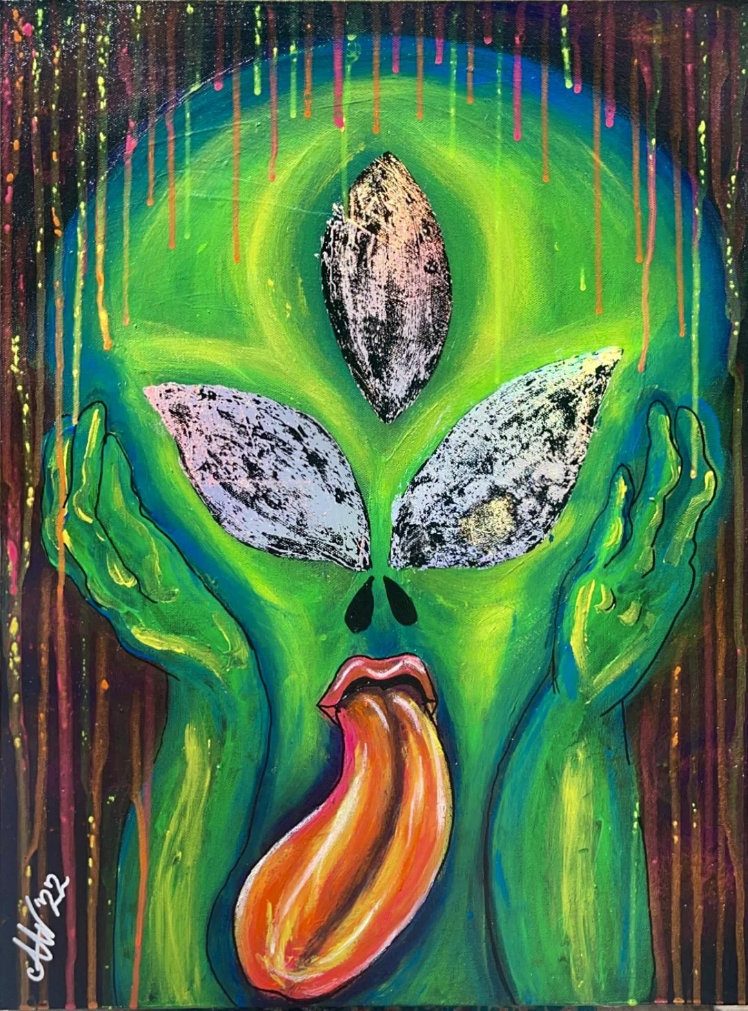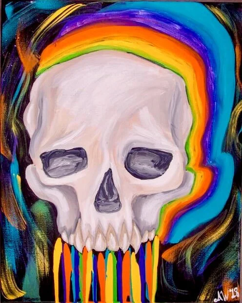 Abi Warner’s paintings are a visceral burst of color, memory, and emotion—blurring the line between the surreal and the autobiographical. Working primarily in acrylic and watercolor, Abi paints with instinct rather than strict planning, letting intuition, mood, and music guide each brushstroke. Her pieces often feel like dreams you almost remember—flickering with elements of futurism, nostalgia, and a touch of chaos.