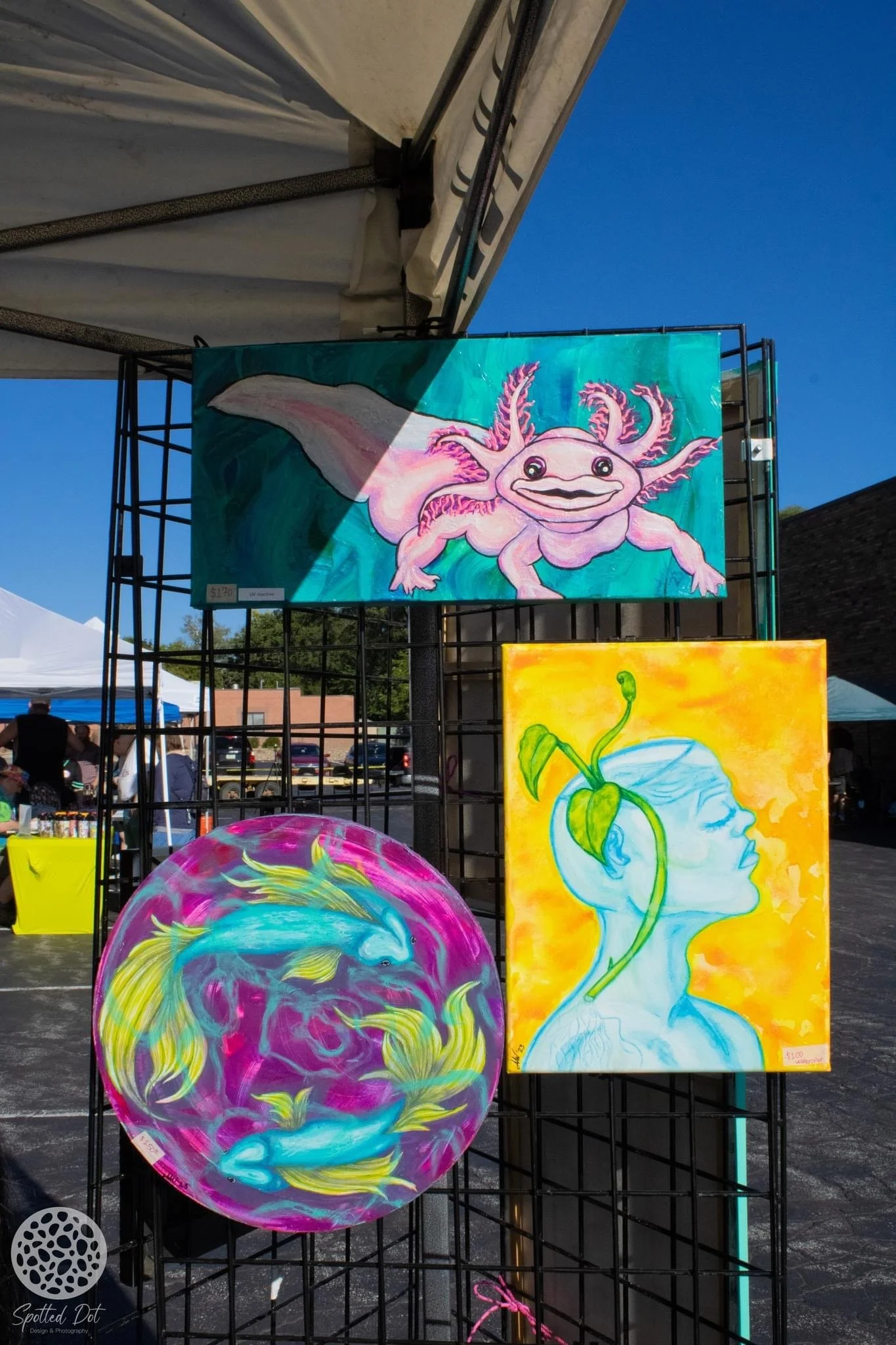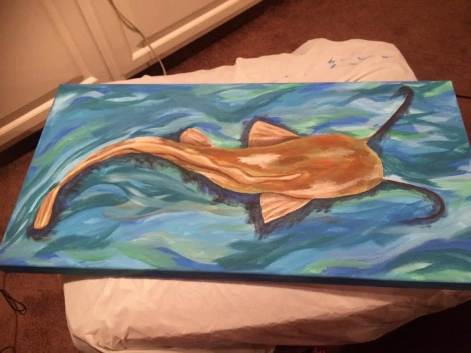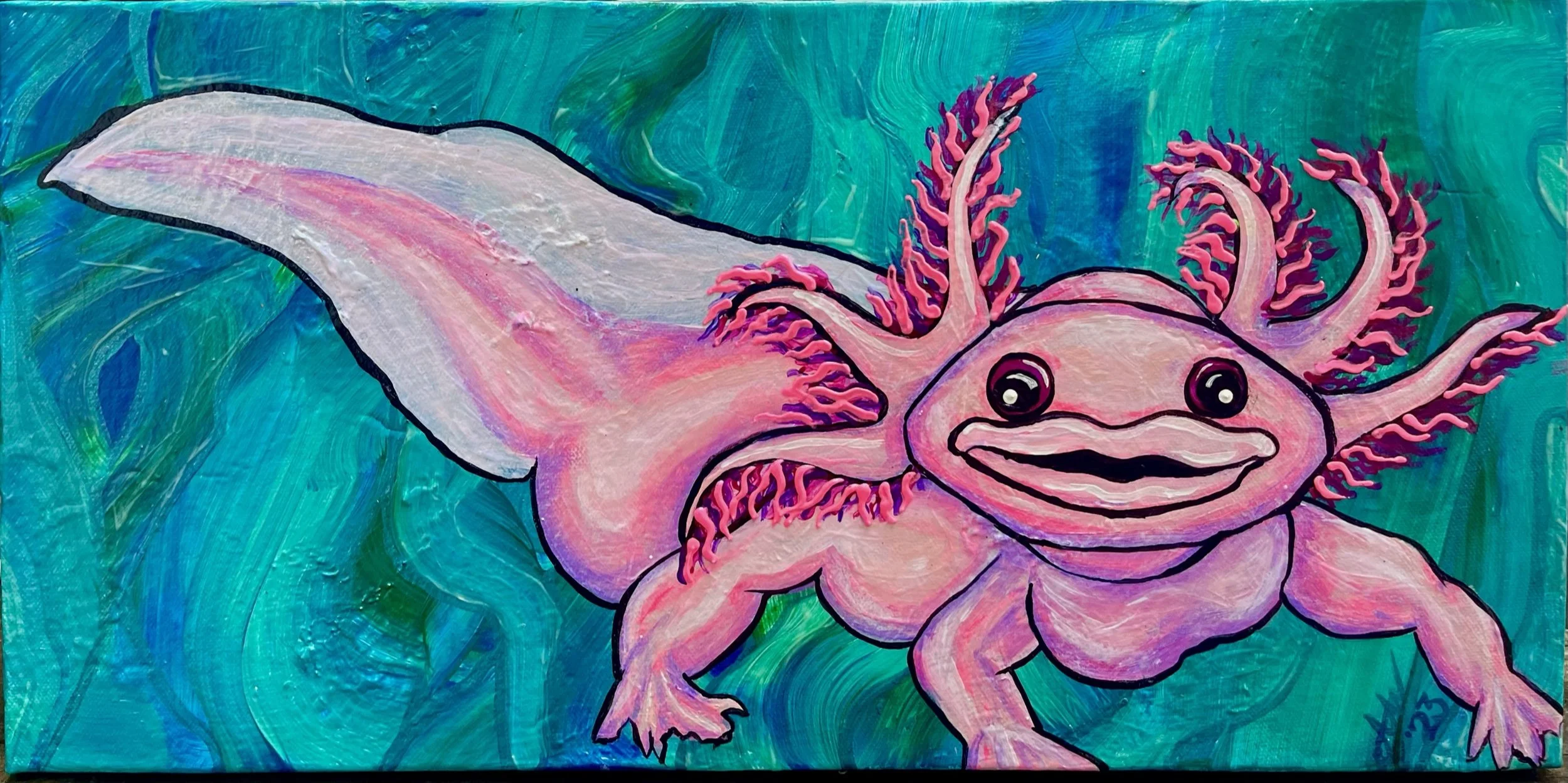 Each painting is a snapshot of Abi’s inner world—a way to process chronic illness, mental health struggles, and the complexity of existing in a body that doesn’t always cooperate. Her influences—ranging from Van Gogh’s movement to Betsey Johnson’s maximalism—come through not just in the aesthetics, but in the permission they gave her to feel deeply and create loudly.
