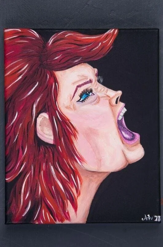 For Abi, painting isn’t just an artform—it’s therapy, rebellion, and storytelling all at once. Whether on canvas, wood panel, or upcycled materials, her work invites you to feel something, remember something, or see yourself a little differently.